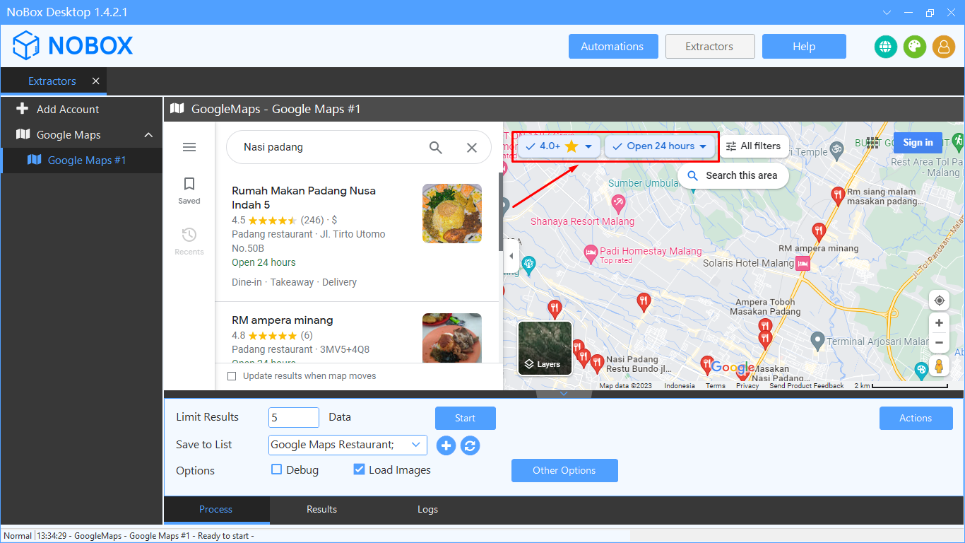 The Google Maps Extractor can efficiently extract business prospect data (your potential customers) from Google Maps with the best speed and quality of results. This software extracts various available data from Google Maps, including links, business names, addresses, phone numbers, websites, ratings, total views, opening hours, image links, latitude, longitude, plus code, and business fields. The data is automatically stored in NoBox.Ai. You can export the data in Excel (.xlsx, .csv) and JSON (.json) file formats.