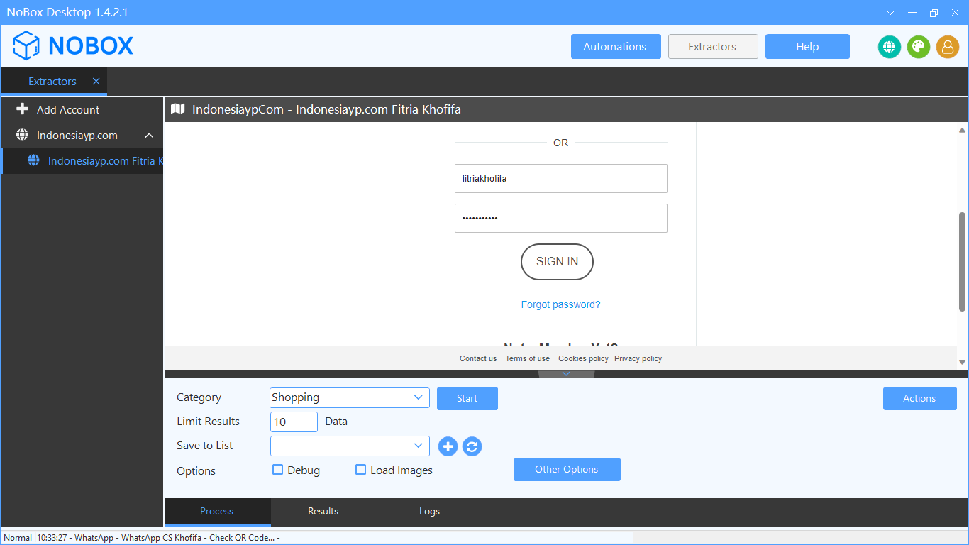 - Reopen the NoBox application and navigate to [Extractor-> Indonesiayp.com]. You will see a notification that the previous process is not yet complete.