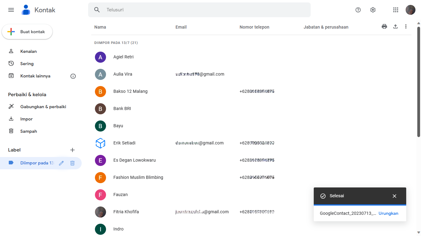 • Google Contacts: It is used to download contact data in CSV format, making it easier for you to import contact data into Google Contacts.