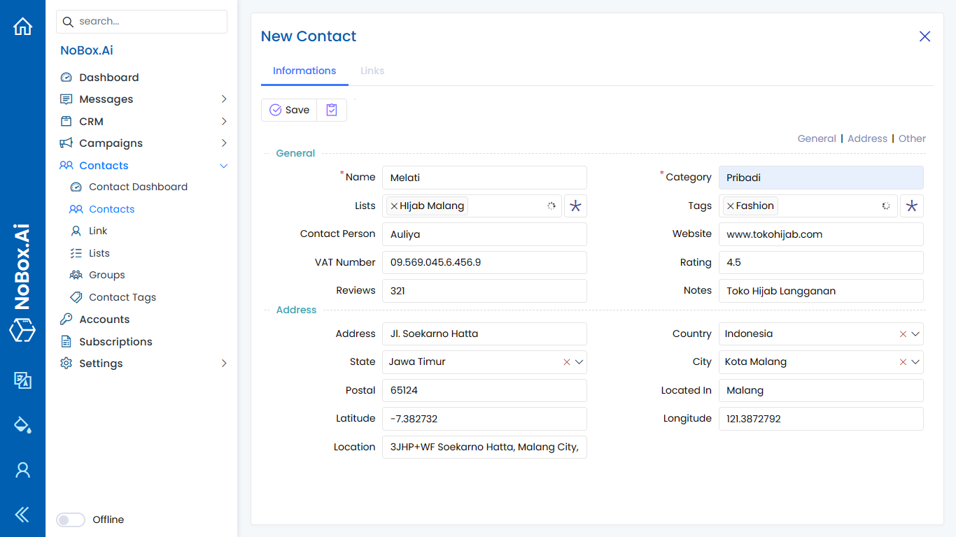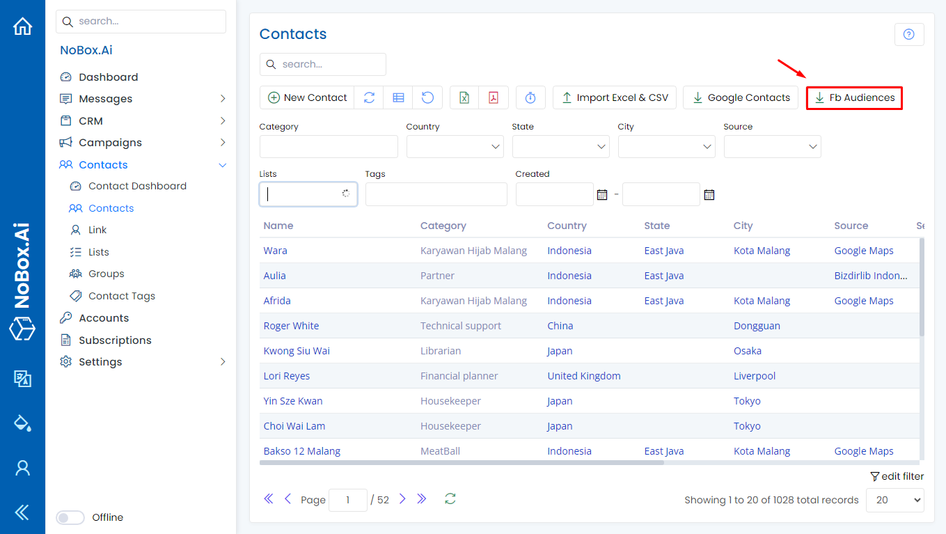 Contact is a feature within Nobox.Ai used to store extracted contact data and manage target promotion data.