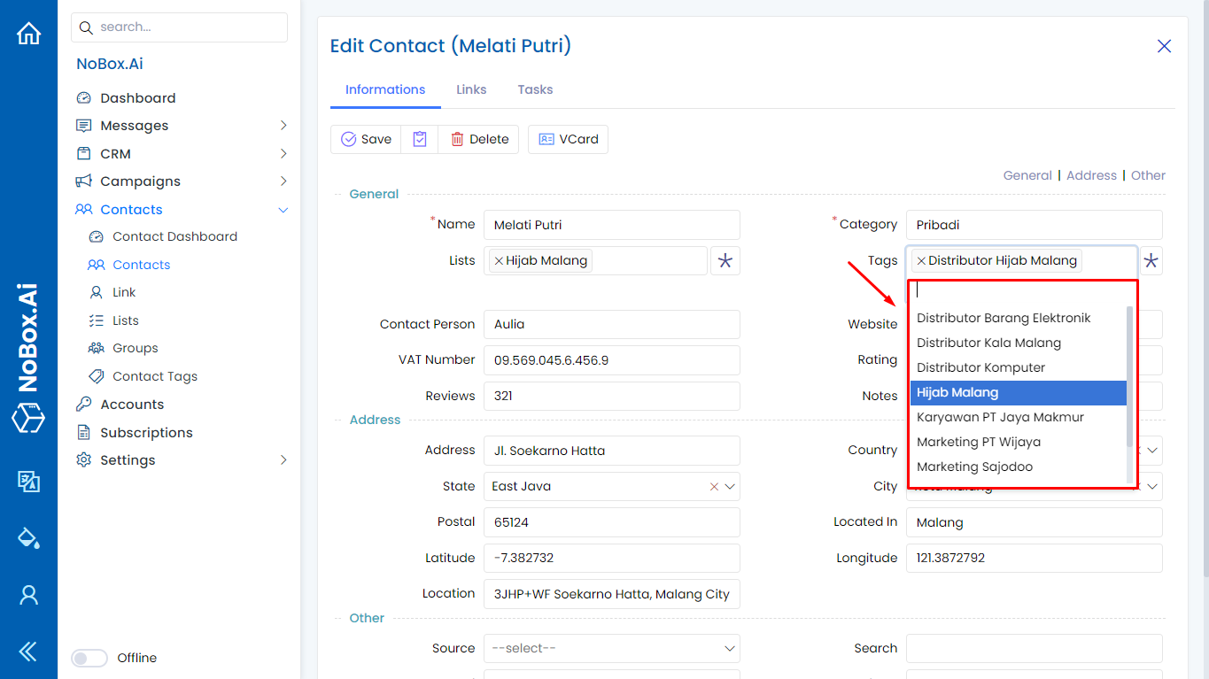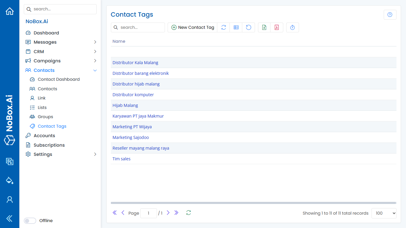 The Contact Tag is a feature in Nobox.Ai used to categorize your contact data.