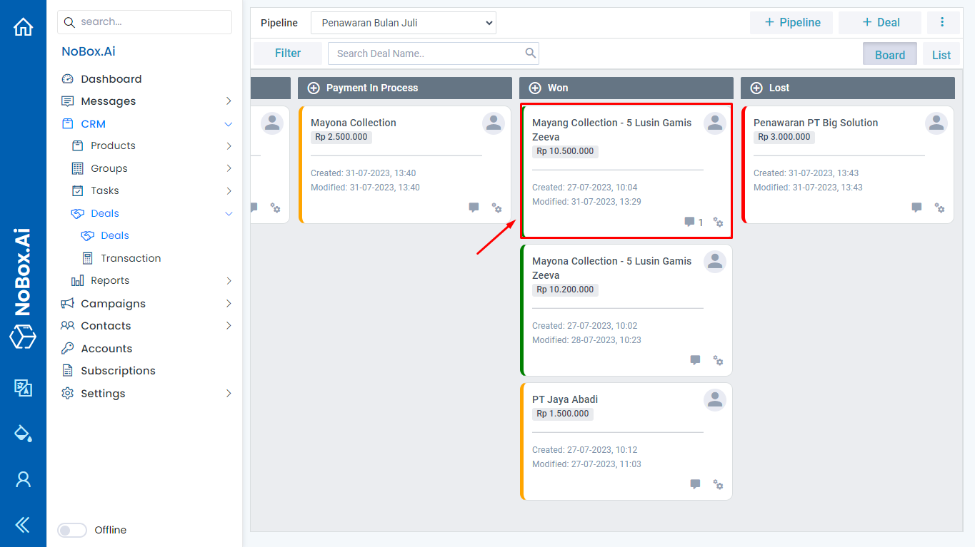 The current revenue will be displayed when the offer associated with the company reaches the [Won] status. Example: For the PT SEJAHTERA offer, where the bid price is 18,000,000 and has reached the Won status, the target company's goal will display data amounting to 18,000,000.