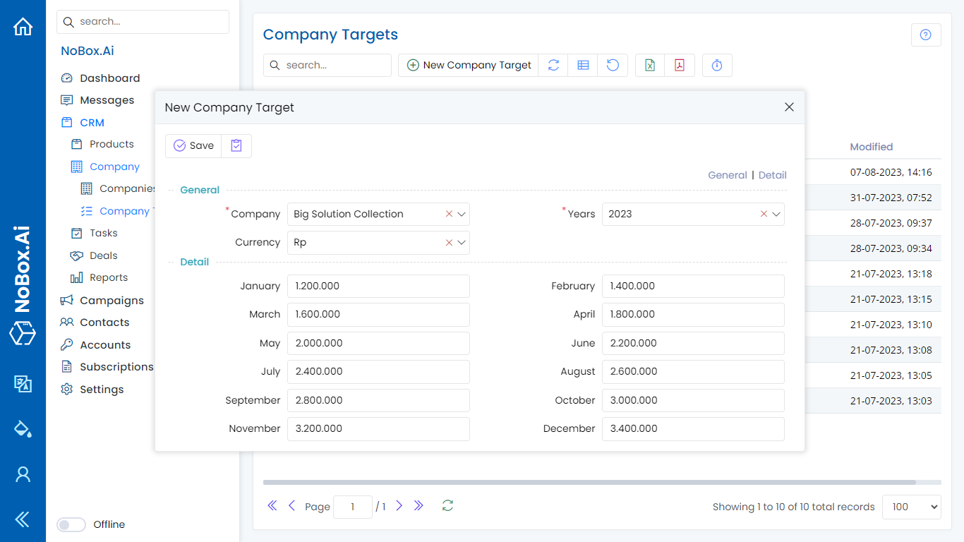 Company Target is a feature in Nobox.Ai used to set a marketing target for a company each month.