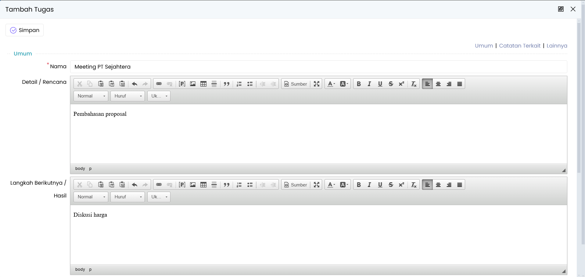 | Deal | Related deal (auto-populate) | Deal PT Puspita |