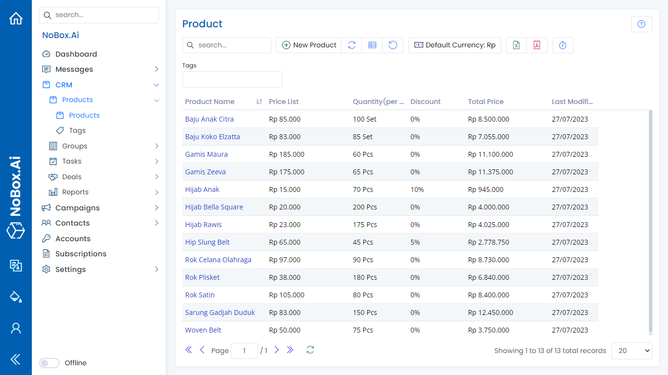 The product is one of the menus on NoBox.Ai used for managing the data of products being sold.