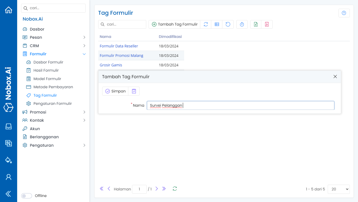 The Form Tag is a feature in NoBox used to categorize your form data.