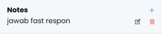 - Notes are records related to the selected conversation. Notes can be added, edited, and deleted. Other agents can also add notes.