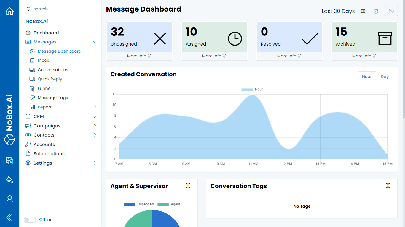 | Unassigned | Total of all conversations not yet assigned to agents |