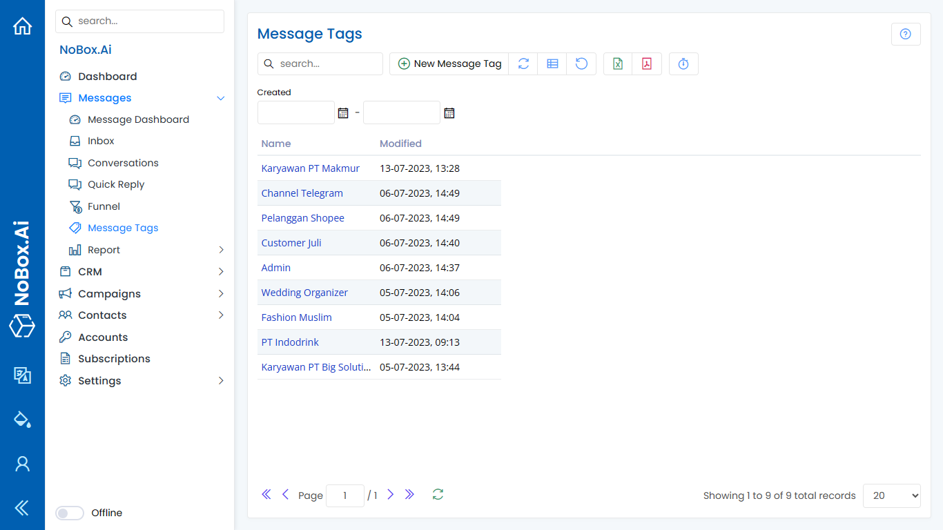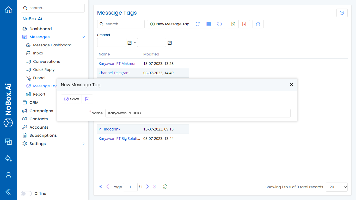 The Message Tag is a feature in Nobox.Ai used to categorize your message data.