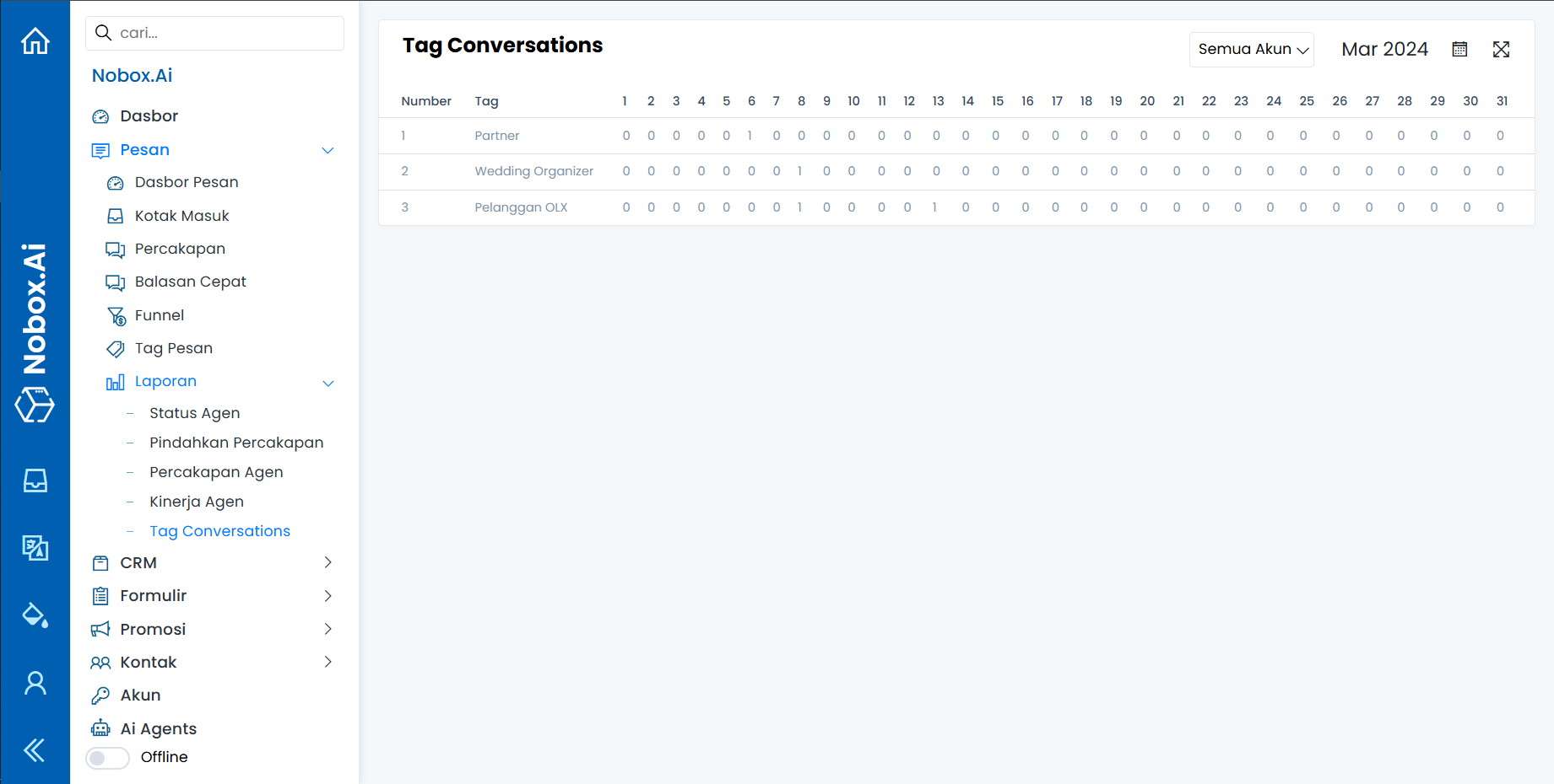 The "Laporan" is a feature on Nobox.Ai used to display reports of conversations conducted.
