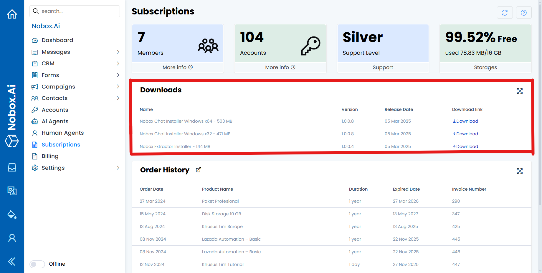 Visit the NoBox website and log in using your account; ensure you already have a registered account. Select the [Subscription] menu, download the installer that matches your computer's operating system.