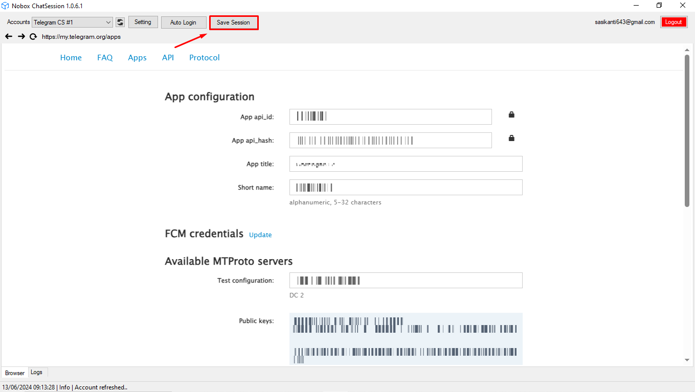 - Pastikan di tab logs ada informasi “Save session Telegram Automation successfully”