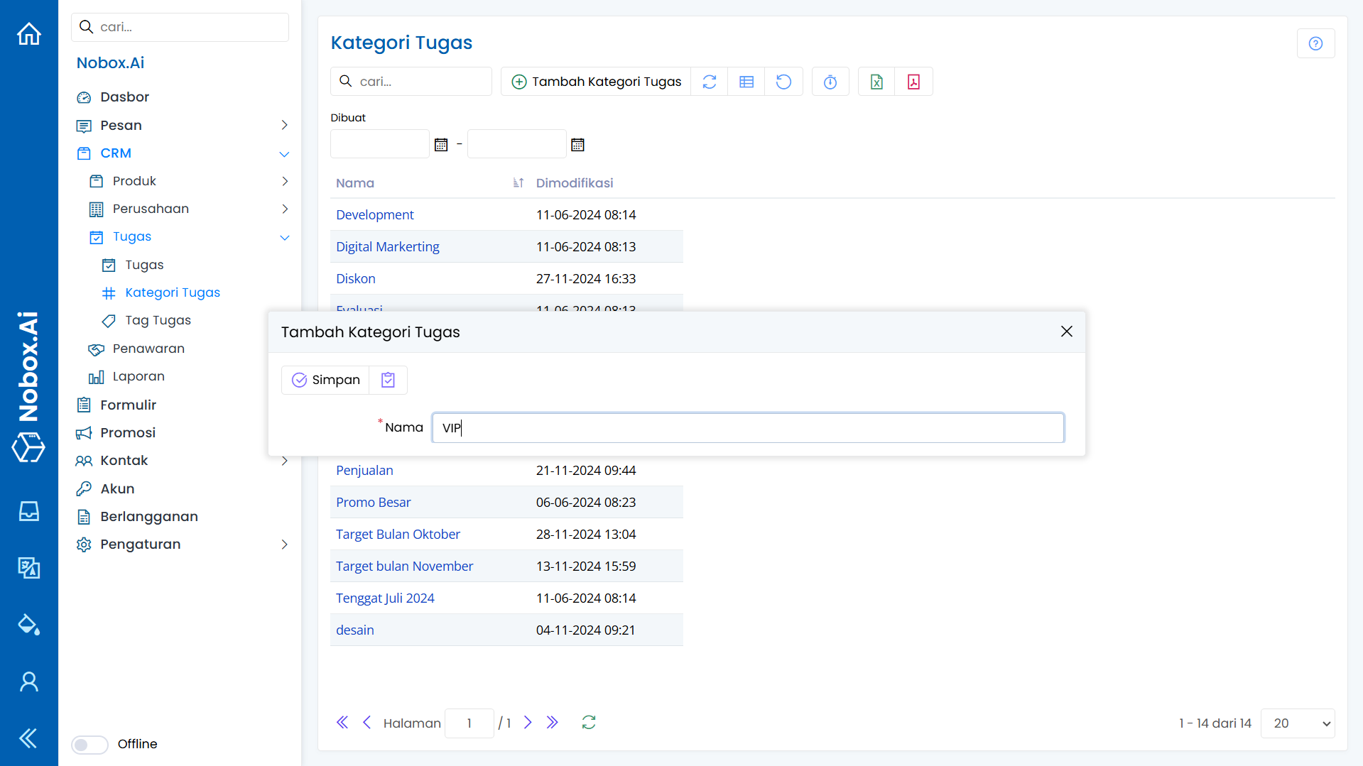 Kategori Tugas merupakan salah satu menu pada Nobox.Ai yang digunakan untuk mengelompokkan data tugas.
