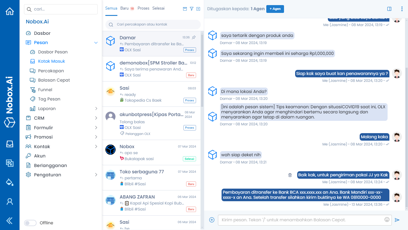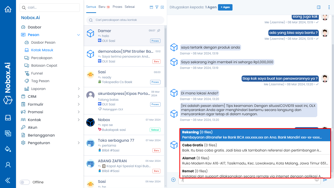 1. Pilih modul [Pesan] ➔ klik menu [Kotak Masuk] untuk melihat semua percakapan masuk. Kemudian pilih salah satu pesan tersebut.
